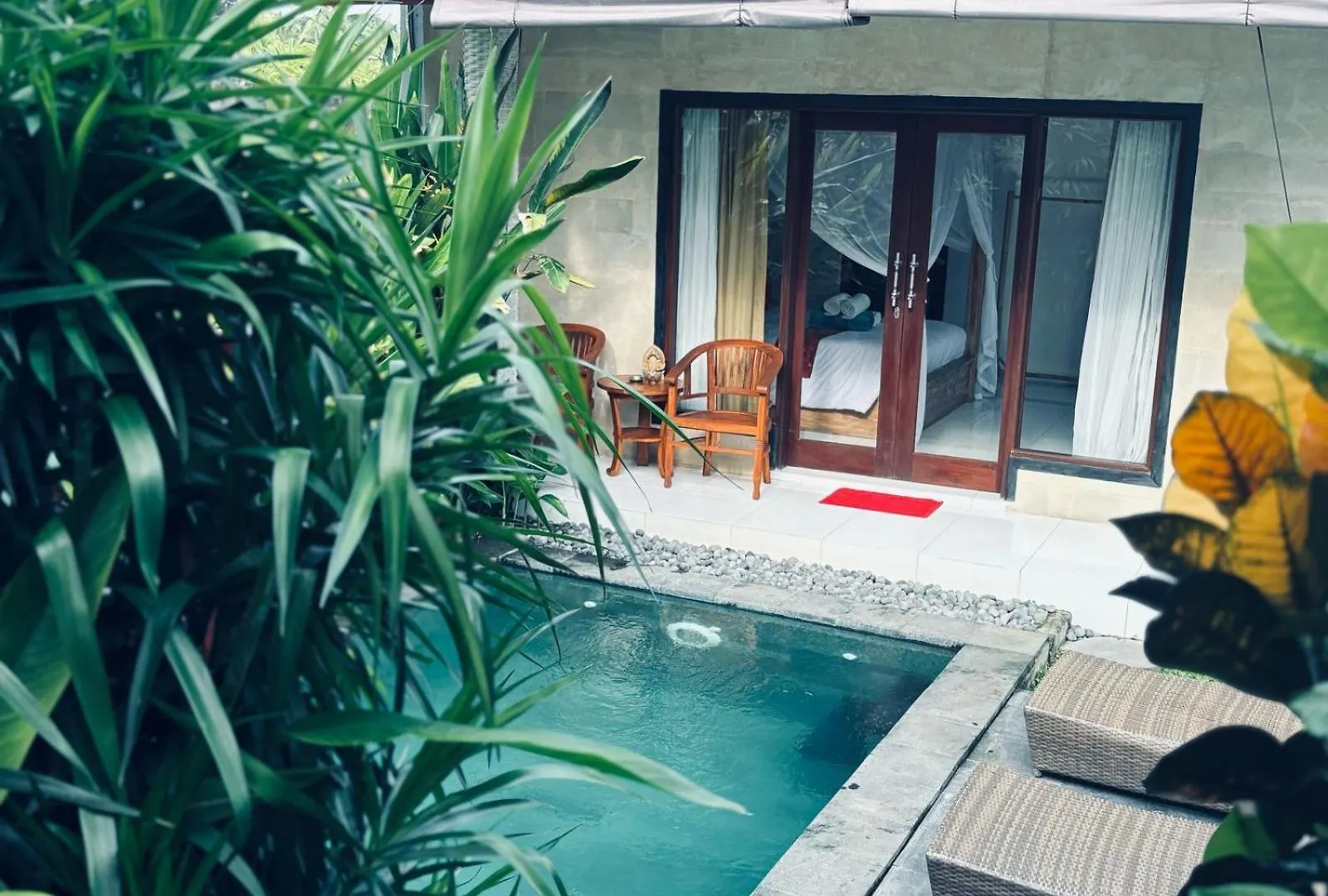 Nia Ubud Villa提供私人游泳池,而到德格拉朗梯田街边市场开车只需10分钟。 这座别墅还设有露台,美景尽收眼底。